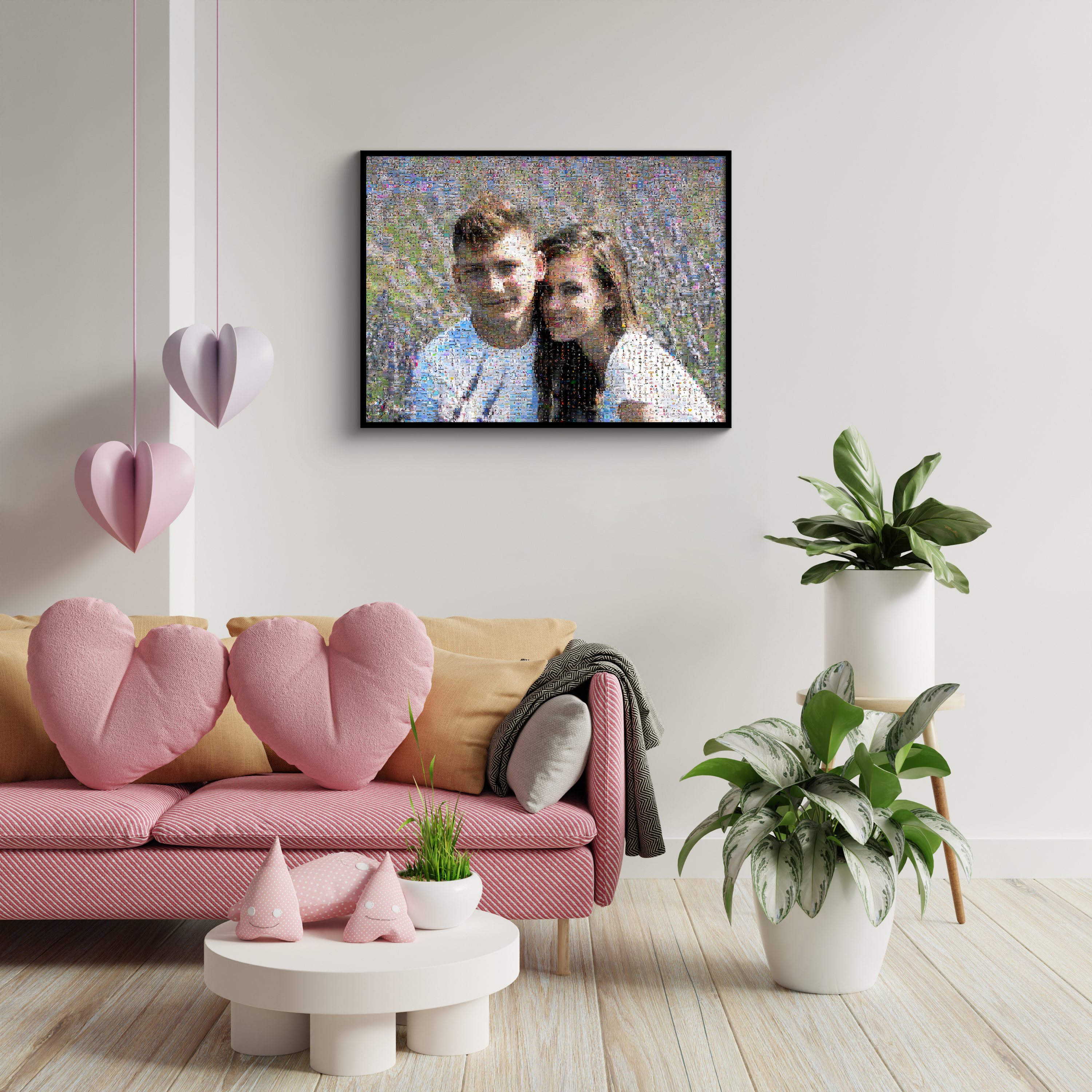 Ontdek hoe eenvoudig het is om een uniek fotomosaik te maken van jouw mooiste momenten. Stel een prachtig paarbeeld samen uit een overvloed aan kleinere foto's. Dit persoonlijke kunstwerk is ideaal voor koppels die hun gedeelde herinneringen willen vastleggen, en een geweldig cadeau voor huwelijken, jubilea of Valentijnsdag. Geef jouw interieur een persoonlijke touch met dit bijzondere decoratieve stuk.